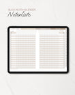 Das Produkt besteht aus einer beschreibbaren PDF-Datei und einer Anleitung. Zur Nutzung der Datei ist die Installation der App GoodNotes oder Noteshelf erforderlich, welche nicht in diesem Produkt inkludiert ist. Eine Rückgabe digitaler Produkte ist ausgeschlossen.