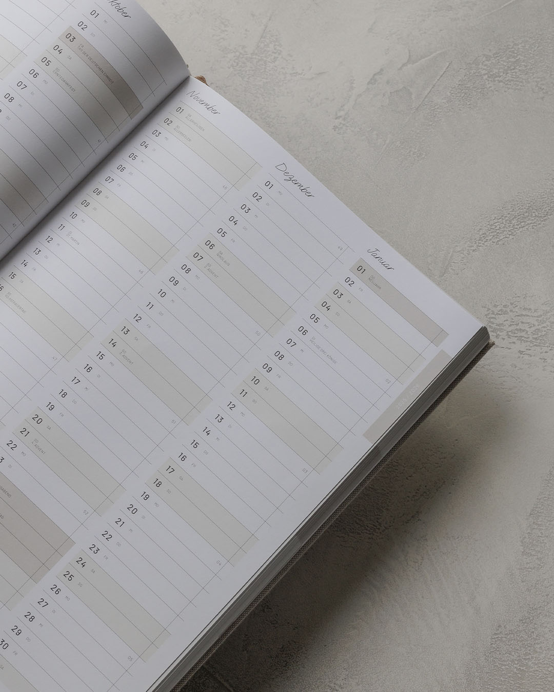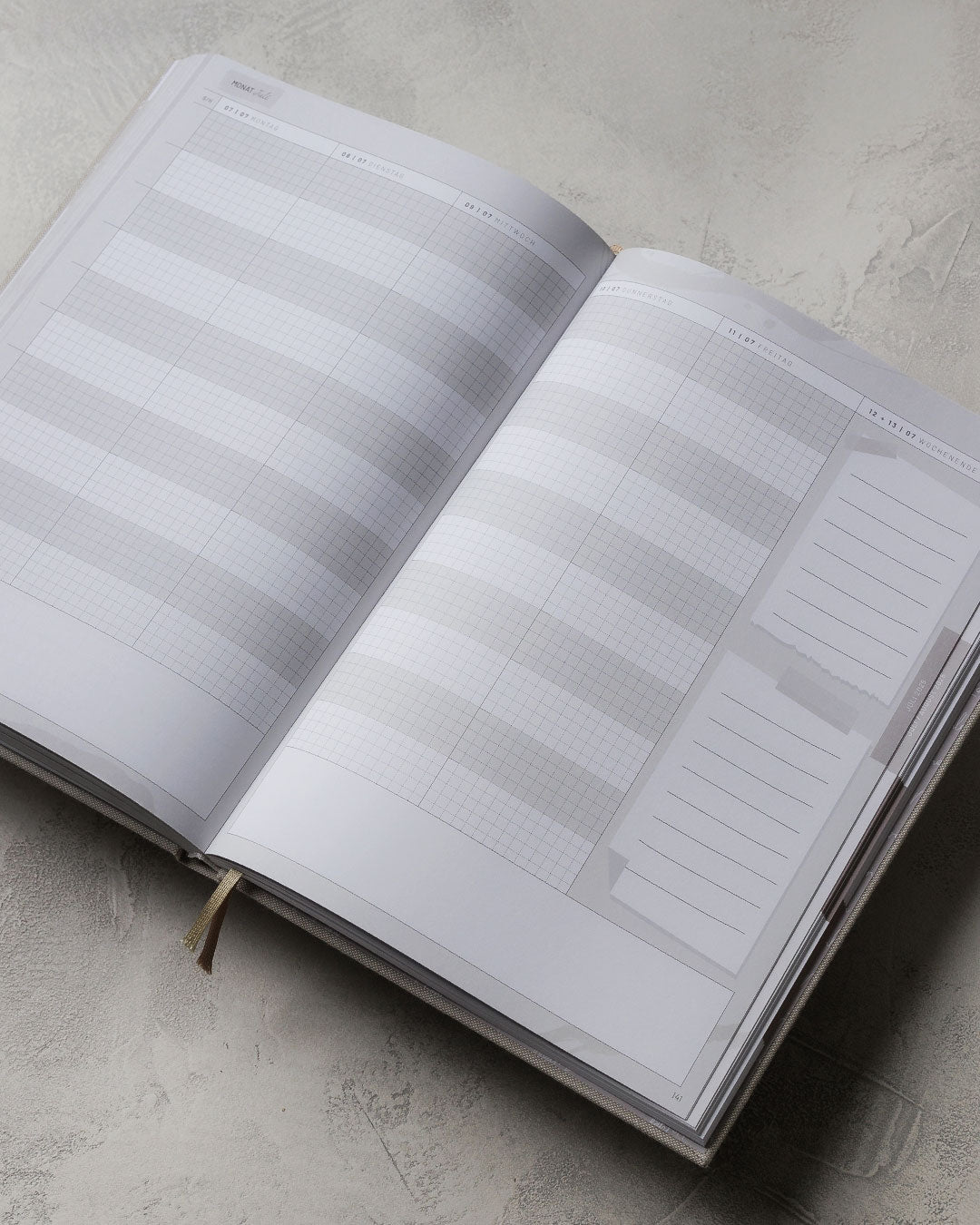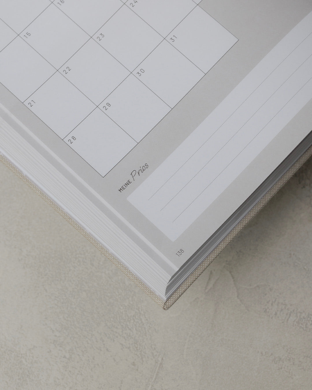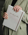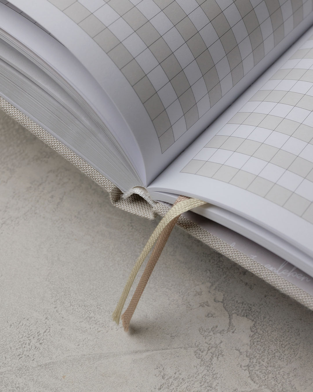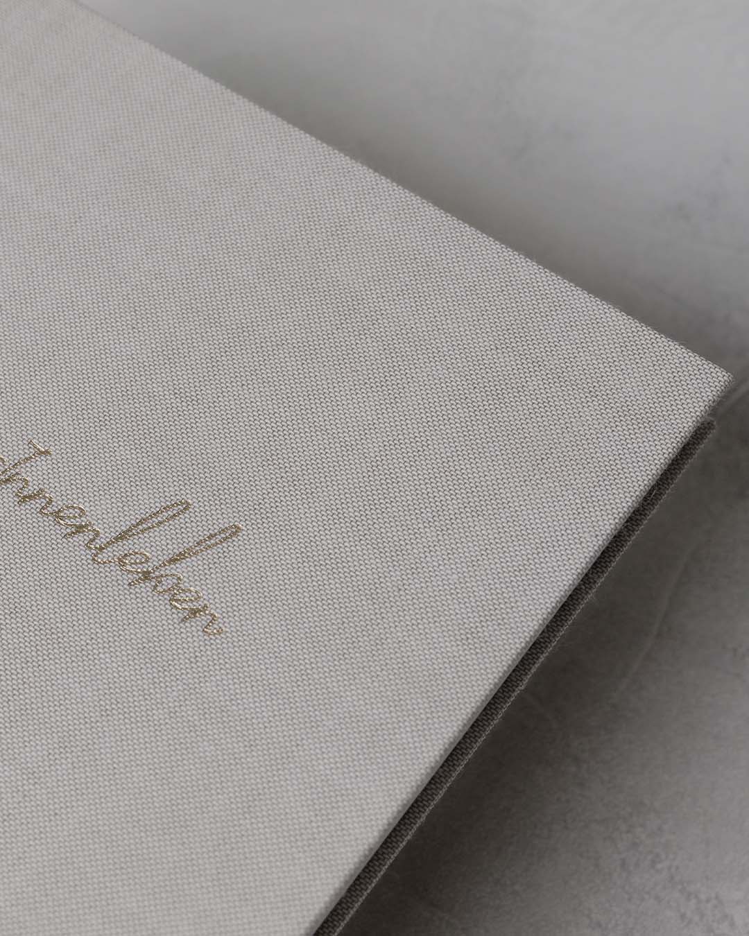 - A4-Format mit Hardcover, hochwertigem Stoffbezug aus Leinen