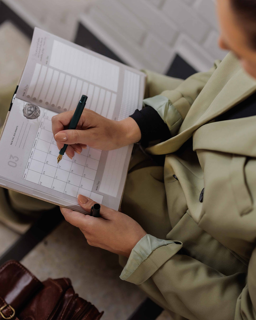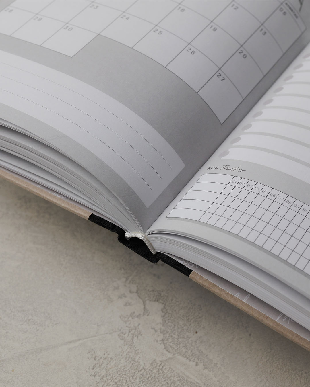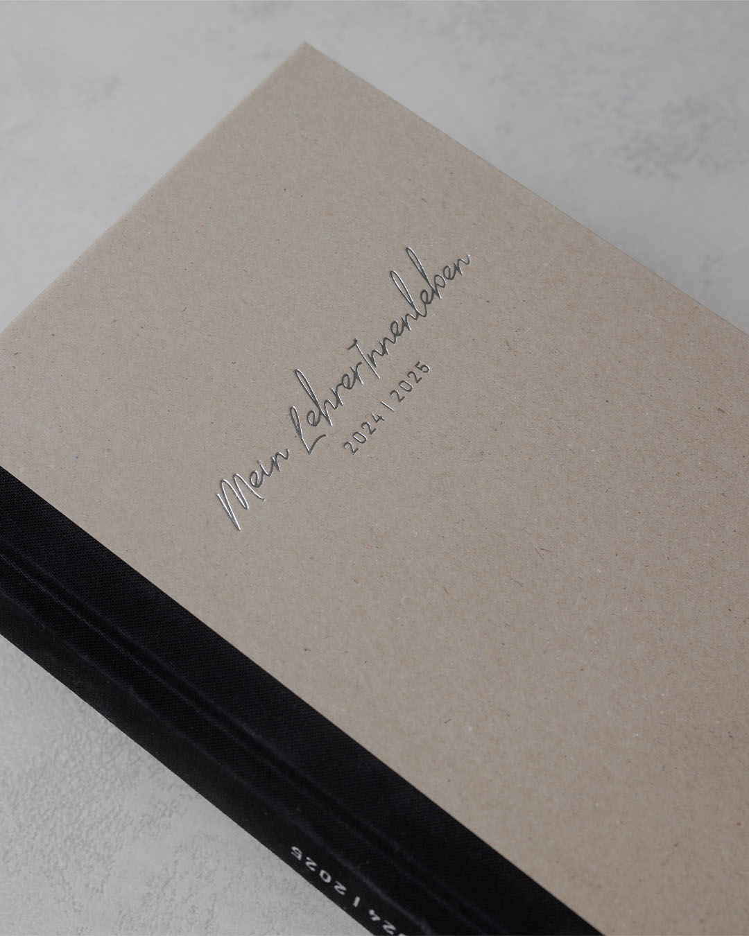 - A5-Format mit Silberprägung, nachhaltigem Gobi-Cover und Schutzfolierung
